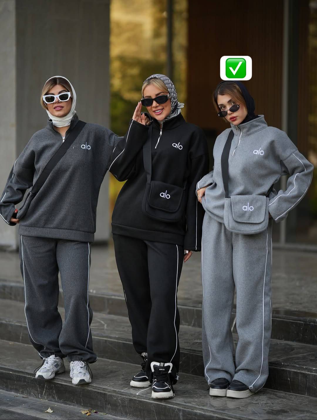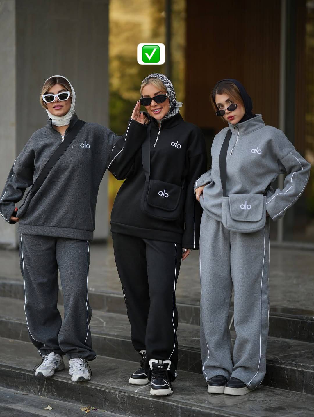 ست مدل آیلین با جنس فوتر (سویشرت، شلوار و کیف)