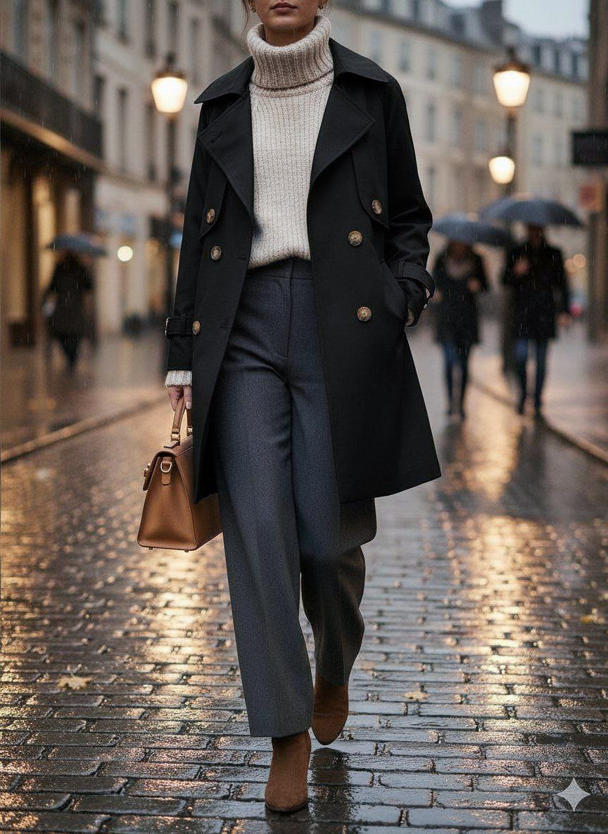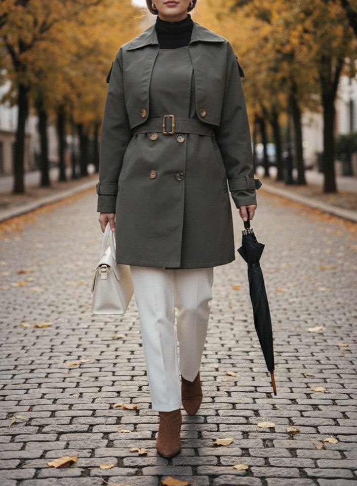 پارچه‌های باکیفیت، دوخت تمیز و طراحی خوش‌فرم باعث شده بارانی ترنج به انتخابی ایده‌آل برای روزهای بارانی و هوای خنک تبدیل شود. این مدل معمولاً با کمربند، دکمه‌های ظریف و برش‌های اصولی همراه است تا ظاهری منظم و شیک به شما بدهد.