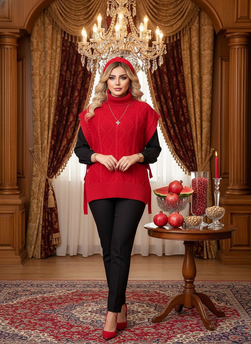 طراحی فانتزی و رنگ‌های شاد این وست، آن را برای سنین مختلف مناسب کرده و بدون محدودیت می‌توان در انواع استایل‌های دخترانه، زنانه و حتی نوجوانانه از آن استفاده کرد. اگر قصد دارید در جشن یلدا استایلی ویژه و متفاوت داشته باشید، وست بافت یلدایی یک انتخاب هوشمندانه و کاملاً هماهنگ با تم این شب سنتی است. این محصول به‌خوبی با شلوار جین، دامن‌های پشمی، بوت و اکسسوری‌های زمستانی ست می‌شود و می‌تواند نقطه تمرکز استایل یلدایی شما باشد. با انتخاب یک وست بافت یلدایی، هم گرما و راحتی را تجربه می‌کنید و هم استایلی منحصر‌به‌فرد و خاطره‌ساز خواهید داشت